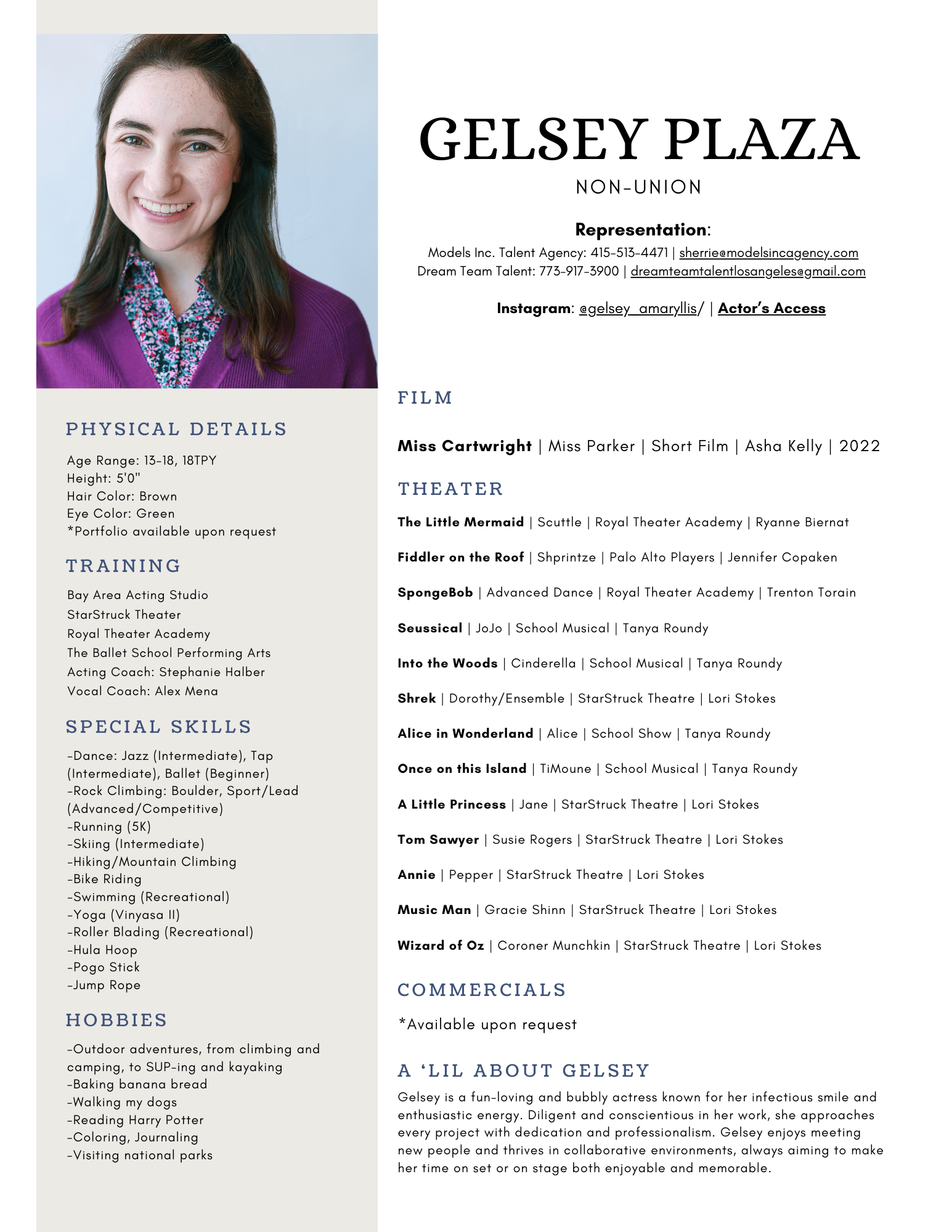 Here's my updated acting resume!